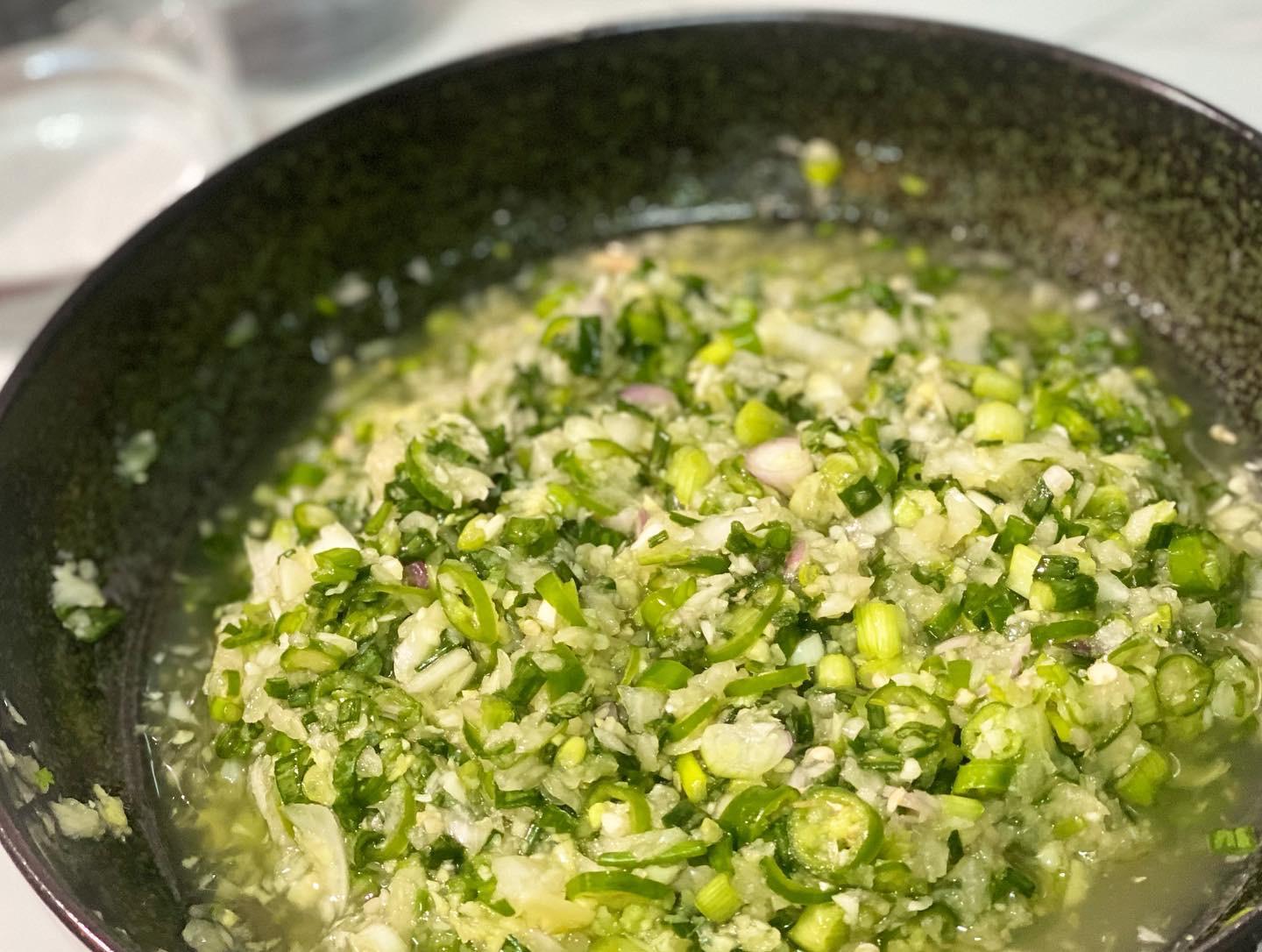 材料好多,但好簡單,有魚露、檸檬同青檸就好泰國啦,調味可以一邊試,一邊再加。糯米椒唔太辣,想要辣可以加多幾隻細細隻嘅朝天椒。