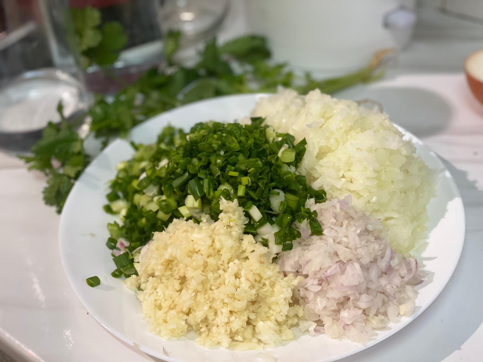 1. 將上面所有嘅材料切蓉,撈勻