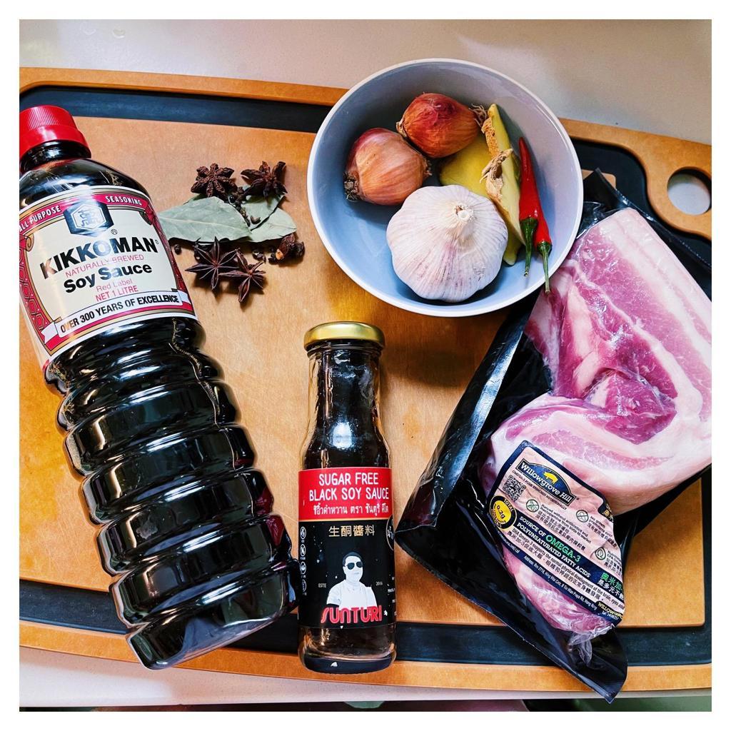 **新加坡萬字生抽、生酮老抽、加拿大豬腩購自 @foodieyardhk 每人口味不同,最好溝好左生抽老抽比例,試啱味先加入豬腩肉中,唔好一次過加晒。水都唔洗一定加晒全部水,加到蓋到豬腩肉就可以,加完水再試味,應該會覺得少少淡,但煮完滾完會濃縮左,所以唔使太咸。