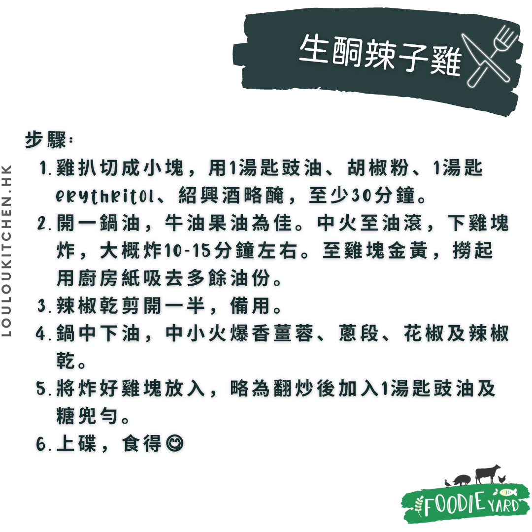1. 雞扒切成小塊,用1湯匙豉油、胡椒粉、1湯匙erythritol、紹興酒略醃,至少30分鐘。