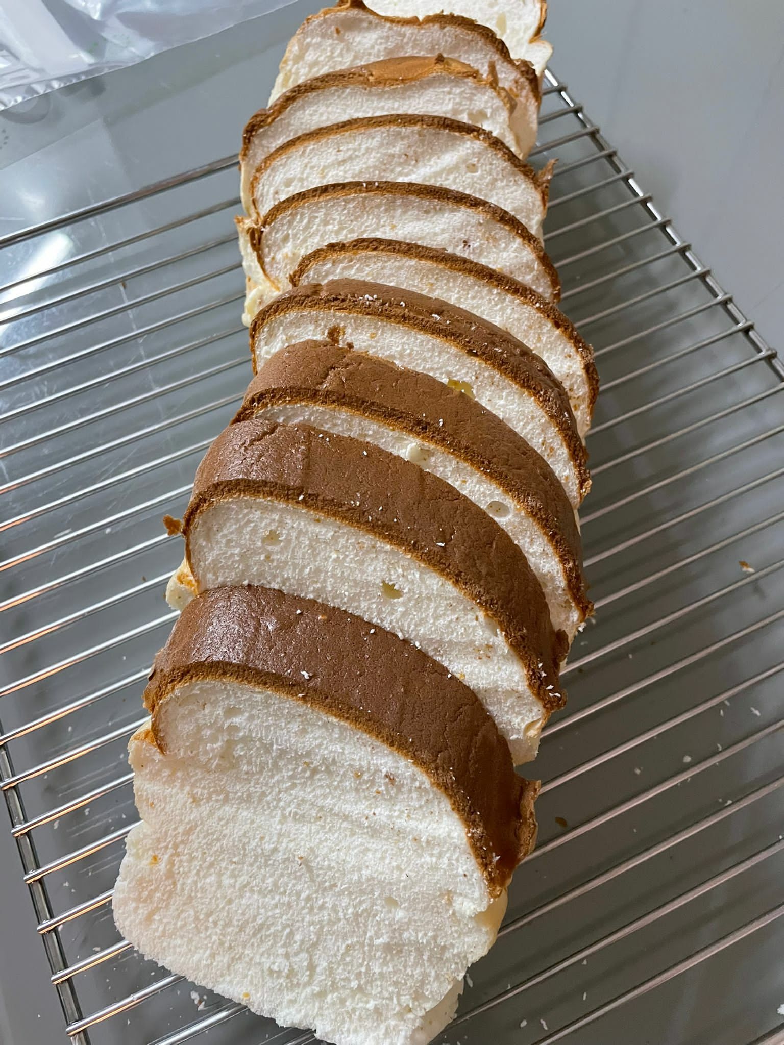 之前既蛋白包version 用真蛋白液,做出黎既效果帶dd棉花糖口感,今次Maria Emmerich recipe 係用全蛋白粉,材料仲簡單左,冇左棉花糖口感,真係勁勁勁似凡人面包😍 Thank you for the incredible recipe 😘@mariaemmerich