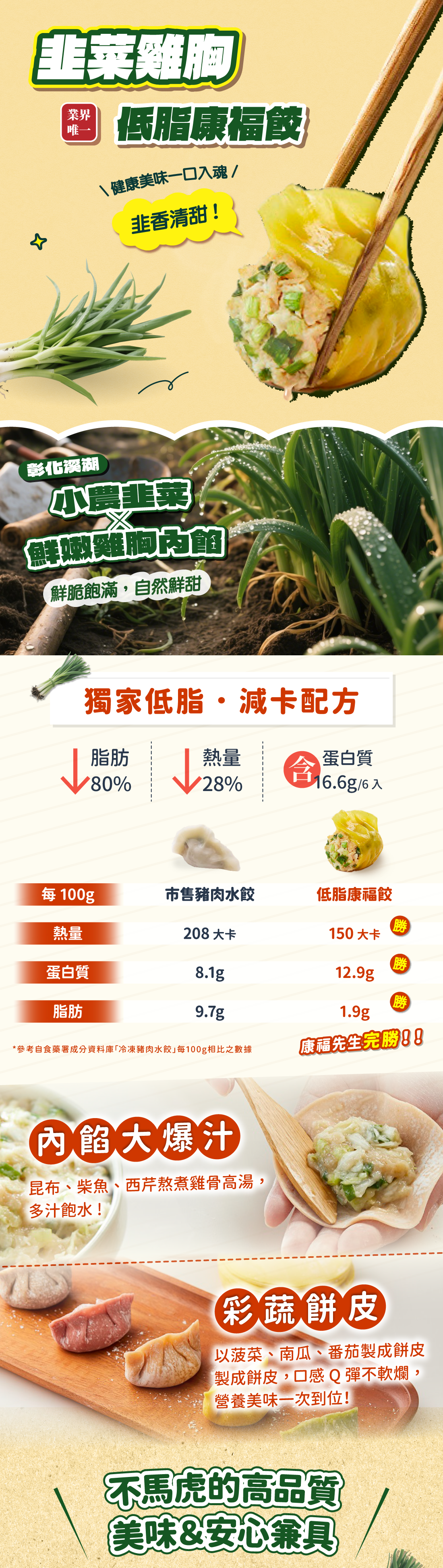 選用彰化小農新鮮韭菜,清香撲鼻、口感多汁清甜!恰到好處的絕妙滋味。